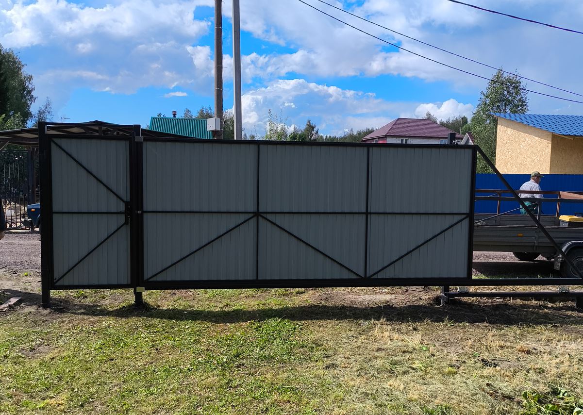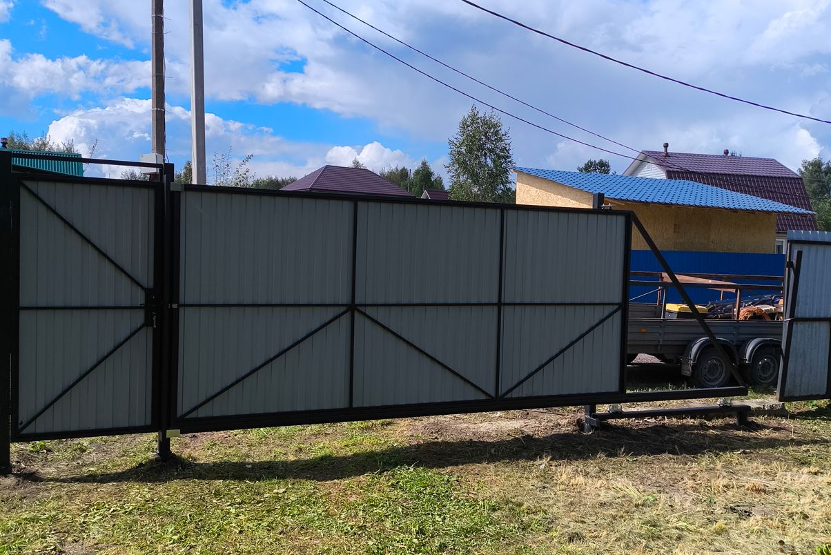 Автоматические откатные ворота из профнастила