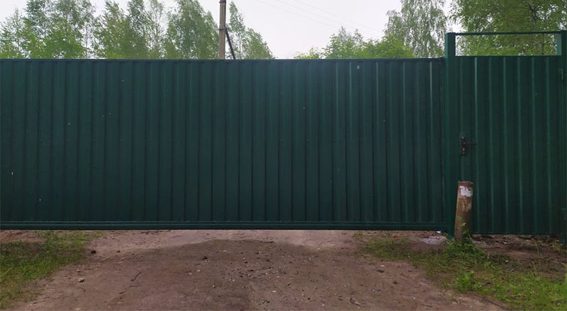 Откатные ворота размером 2 на 5 метров – габаритная конструкция, которую чаще всего устанавливают на территории промышленных предприятий, производственных цехов, торговых центров. Они позволяют легко проезжать габаритному транспорту и надежно защищают от проникновения на территорию. Также их можно встретить на загородных участках, в частных домах.